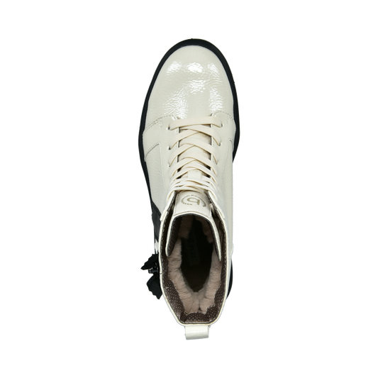 Diese beigefarbenen Stiefel haben eine ultraleichte Sohle und ein glänzendes Finish. Das moderne Design mit schwarzer Sohle und Reißverschluss macht sie vielseitig und bequem zu jedem Outfit. Diese bequemen und stilvollen Stiefel sind ideal für die Wintersaison.
