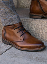 Diese cognacfarbenen Lederstiefel wurden speziell für Anzüge entwickelt. Nach dem Tragen genügt ein kurzes Abwischen und die bugatti Herrenschuhe erstrahlen wieder in neuem Glanz. Die handgefertigten Muster verleihen ihnen Eleganz und die Option Wide Comfort" sorgt für Wohlbefinden.